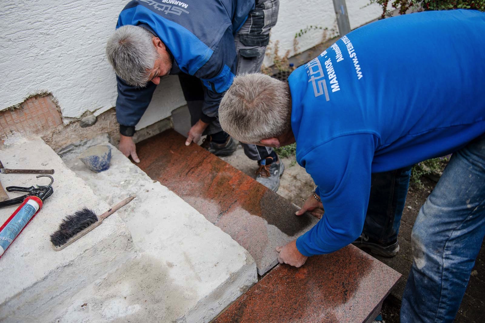 Wir fertigen für Sie Setz- und Trittstufen aus der von Ihnen ausgesuchten Rohplatte. Die Massivstufen werden nach unserem Aufmaß in unserer Werkstatt passgenau hergestellt und auf vorbetoniertem Betonkern und Bolzentreppen in freitragender Ausführung gesetzt. So erhalten Sie keine Massenware, sondern Stufe für Stufe Qualität aus Meisterhand. Eine individuelle Treppe, die sich perfekt in Ihr Haus einpasst.